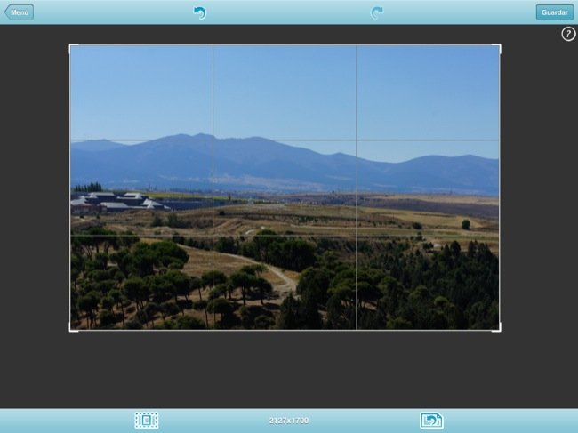 está indicado para personas, edificios u otros objetos, ya que la opción de rellenado causará resultados imprevisibles. Pero, volviendo al menú, vemos que podemos abrir una foto de nuestro Carrete, sacar una foto con la cámara, ver