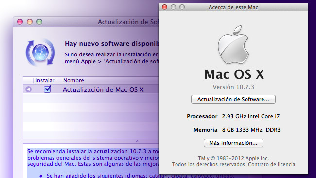 Apple acaba de lanzar la esperada actualización 10.7.3 de Mac OS X Lion con un considera número de mejoras de estabilidad, compatibilidad y seguridad, así como la ampliación del soporte de idiomas con la incorporación del catalán, croata, eslovaco, griego, hebreo, rumano, tailandés y ucraniano. La nueva versión de Lion pretende solucionar todos los problemas detectados hasta la fecha, que no son pocos: