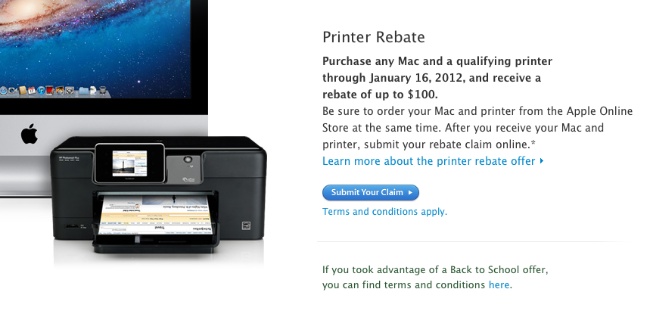 ´El lunes 16 de enero será el último día en el que los clientes pueden conseguir un descuento con una impresora al comprar un Mac. Los clientes tendrán noventa días desde la fecha de la compra para reclamar ese descuento. Si la demanda es incorrecta, se darán treinta días adicionales para corregirla.