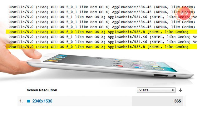 Ahora que sólo restan escasos días para el evento Ars Technica ha observado como en los archivos de registro (Logs) de sus servidores han aparecido datos interesantes. Por un lado conexiones realizadas por un dispositivo con una resolución de 2048×1536 (Retina Display), por otro una versión de iOS 6 hasta ahora no vista, ya que la oficial es la 5.0.1 y la última entregada a desarrolladores la 5.1. Además las IP, según una base de datos, corresponden a las oficinas de Apple en Cupertino.