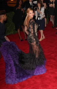 La cantanta se presentó así en la Gala 2012 del Metropolitan Museum de Nueva York esta semana. No entendemos nada y estamos pensando si Beyon se ha apuntado a la moda de mezclar Valium con ginebra que hizo famosa Carmina Ordóñez.