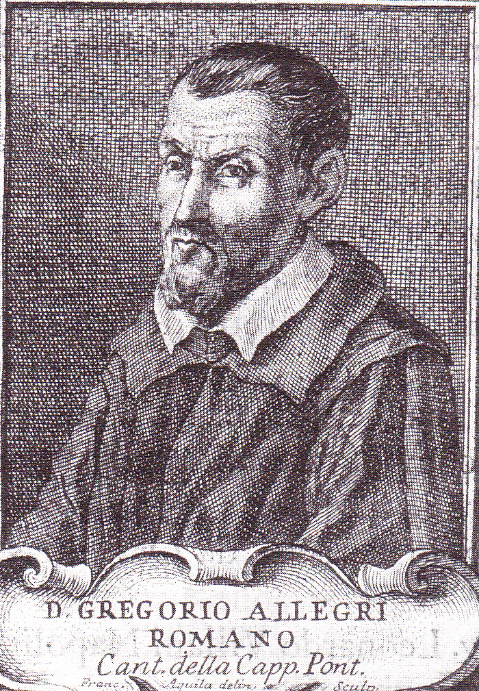 Nacido en Roma, 1582, muerto en Roma, 17-2-1652. Compositor italiano. No tiene ningún lazo de parentesco con el pintor Allegri de Corregio. Fue niño cantor en San Luis de los Franceses en Roma (1591-96), y luego chantre (1601-07), mientras estudiaba con Giovanni Maria Nanino. Se ordenó sacerdote y fue nombrado maestro de capilla de la Catedral de Fermo (1607-21). Volvió entonces a Roma como chantre de la Capilla Papal (1629). En 1638 escribió ei célebre Miserere, al que debe su fama. La obra está compuesta para 9 voces y se interpretaba