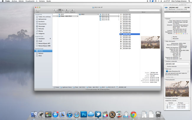 Otra manera, evidentemente es la del inspector que seguramente habrás utilizado más de una vez en tu día a día con el sistema. Para conocer la cantidad de elementos que contiene una carpeta y cuanto espacio ocupa solo tendremos que seleccionar la carpeta y con el botón derecho de nuestro ratón o trackpad elegiremos el sub-menú “obtener información”. Al instante nos aparecerá ademas de datos de permisos o ubicación también obtendremos el número de ficheros y el espacio que ocupa en disco. Si pulsamos Command + I obtendremos los mismos resultados.