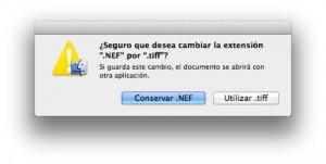 El sistema, nos muestra una ventana en la cual nos permite mantener la extensión de dicho archivo o por el contrario modificarlo por uno nuevo. Si modificas archivos de forma esporádica este mensaje no será un problema, pero si cada día modificas en tu flujo de trabajo un montón de extensiones acabarás cansado de tantos mensajes de “precaución”.