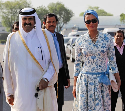 La jequesa de Catar conquista allá donde va. Su encanto traspasa fronteras. La esposa del emir catarí, Hamad Bin Khalifa Al-Thani, embajadora del mundo islámico en la misma línea de Noor y Rania de Jordania y, como ellas, también bella por dentro (dedica gran parte de su tiempo a proyectos humanitarios) y por fuera (a la vista está), rescata en cada aparición la magia y el ensueño de Las mil y una noches. Esta vez, el estilo de la jequesa Mozah Bint Nasser no podía combinar mejor con el escenario de su última visita oficial junto a su marido en Nueva Dehli. La jequesa de Catar, imagen de la modernidad y la sofisticación de su país y una de las damas con más glamour del mundo, reinó en la India con un vestido blanco con estampado floral azul y sin olvidar, eso sí, un turbante a tono como acostumbra siempre. La elegancia de Oriente que tanto gusta en Occidente.