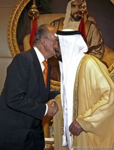Desde la Casa del Rey se ha asegurado que las autoridades de Emiratos Árabes iniciaron una campaña de regalos tras la inauguración del parque temático Mundo Ferrari, el parque temático cubierto más grande del mundo, inaugurado en pleno desierto a finales de 2010, y se levanta junto al circuito de Fórmula 1 de Yas Marina. Precisamente, el Rey acudió cuando aún estaba convaleciente de una operación en el talón de Aquiles de su pie izquierdo, y en contra del criterio de los médicos, al penúltimo Gran Premio de Fórmula 1 de la temporada en el que el piloto español Fernando Alonso obtuvo la segunda plaza.