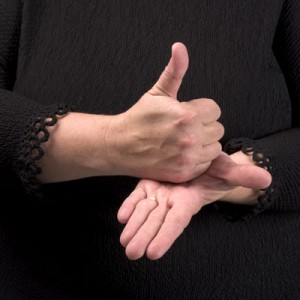 Prueng, madre de un hijo no afectado por la sordera, recuerda con señas su derecho a un trabajo para sustentar a su familia.