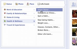 La opción solo estará disponible para las cuentas de EEUU y Reino Unido, irá implementándose en el resto de usuarios. Para implementarla sólo hay que ir a la parte superior del Timeline, y en en el apartado Acontecimiento Importante vaya a Salud y Bienestar y ahí a Donante de órganos