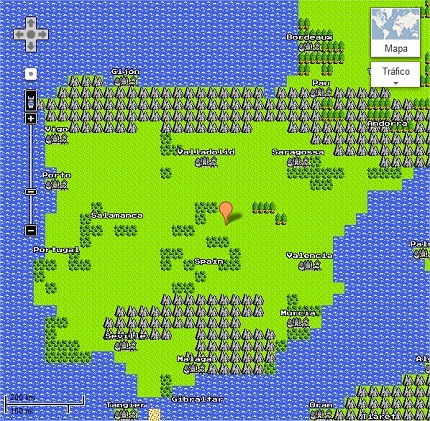 Al hacer click en dicha casilla, el mapa cobra el aspecto que habría tenido Google Maps en la famosa consola de Nintendo. Además, se pueden disfrutar opciones del servicio como Street View, y disfrutar de fotografías de 360 grados a pie de calle con un look pixelado con colores básicos.