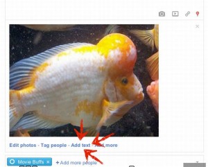 Para añadir texto a las fotografías tan solo es necesario hacer clic en el botón Agregar texto, que se encuentra al lado de los botones Compartir o Etiquetar. Los usuarios podrán añadir una frase corta para compartirla con sus amigos en Google+.