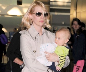 Tiene tan solo siete meses de edad, pero el hijo de January Jones, la actriz de Mad Men, ya se comporta como todo un hombrecito. La intérprete de la premiada serie se ha dejado ver este fin de semana con su hijo en el aeropuerto de Los Ángeles con destino Nueva York, donde entre otros compromisos tenía pendiente una entrevista en el show de Jimmy Fallon, así como la promoción de la nueva temporada de la serie.
