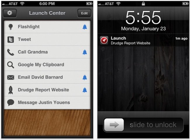 Launch Center es una “alarma” muchísimo más potente y muchísimo más actual, vamos lo que deberíamos de esperar de una alarma en un teléfono inteligente. Y es que este programa no sólo se limita a avisarnos de los recordatorios programados, también puede ejecutar acciones.