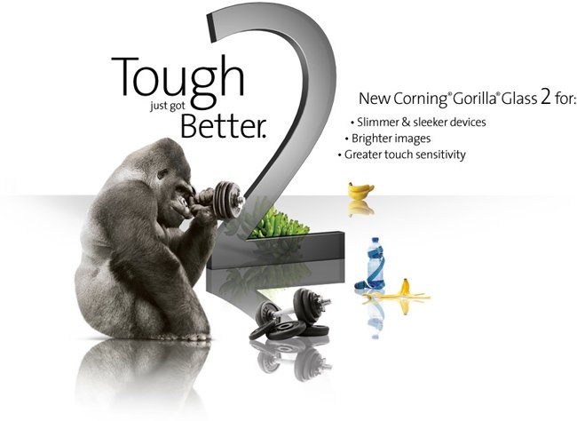 Corning ha presentado la nueva generación del Gorilla Glass, el cristal (presuntamente) súper resistente popularizado por el iPhone original y ahora común en buena parte de los smartphones de gama alta, tablets y toda clase de dispositivos de electrónica de consumo. El nuevo Gorilla Glass 2 presume de ser un 20% más fino manteniendo la misma resistencia a golpes y arañazos, lo que al final puede traducirse en dispositivos más delgados, una mejor respuesta táctil e imágenes más brillantes y nítidas.