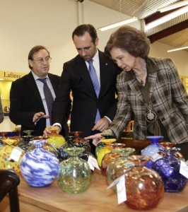 La reina Sofía ya está en Mallorca donde disfrutará de unos días de descanso. Aún así, la soberana ha querido conocer de primera mano el funcionamiento de la fábrica de vidrio Lafiore, situada en la localidad mallorquina s’Esglaieta, en el municipio de Valldemossa. Acompañada por el presidente del Govern balear, José Ramón Bauzá, doña Sofía, que ha vestido para la ocasión una chaqueta de cuadros marrones y pantalones negros, se ha interesado por la técnica tradicional de elaboración de objetos de vidrio mallorquín que emplean los artesanos de esta empresa familiar.
