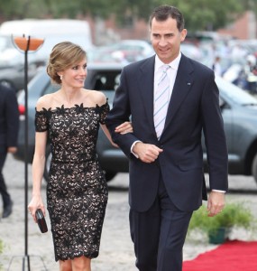 El segundo día de la visita oficial a Portugal de los Príncipes de Asturias concluía por la noche con una cena ofrecida en su honor por el presidente de la República en el Palacio de Queluz, en las cercanías de Lisboa. Doña Letizia eligió para la ocasión un vestido de guipur negro y seda nude con los hombros descubiertos, de Felipe Varela, y un recogido muy favorecedor. La princesa llegó del brazo de su esposo a esta recepción, donde fueron saludando a distintas personalidades de la vida portuguesa antes de entrar al salón donde tuvo lugar la cena oficial. Don Felipe pronunció un discurso en el que destacó el valor de la aportación de España y Portugal a la Unión Europea.