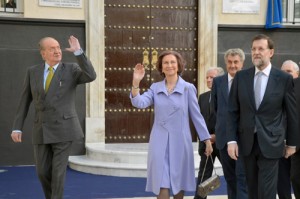 A su llegada, Don Juan Carlos y Doña Sofía han descubierto una placa de recuerdo en la fachada del Oratorio en presencia del presidente del Gobierno, Mariano Rajoy, del Ejecutivo en pleno, y de las máximas autoridades del Estado (los presidentes del Congreso y del Senado, el fiscal general del Estado y los miembros del Consejo General del Poder Judicial y del Tribunal Constitucional).