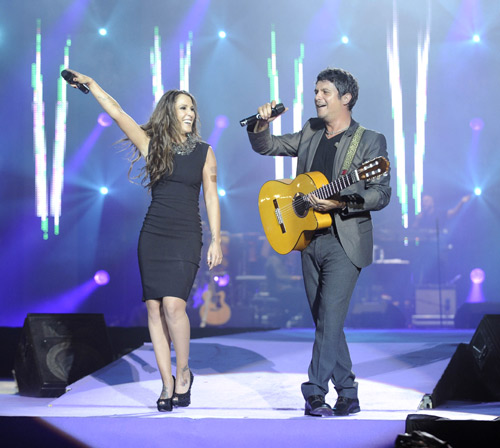 Madrid se convirtió anoche en la capital de la buena música y reunió a los mejores artistas del panorama nacional en la gran fiesta celebrada con motivo del 20º aniversario de Cadena 100. Alejandro Sanz fue, sin duda, el más esperado del multitudinario concierto del que disfrutaron cerca de 35.000 personas en el Estadio Vicente Calderón. Durante una hora, el artista, que el fin de semana pasado celebró su boda con Raquel Perera y el bautizo de su Dylan, interpretó algunos de sus grandes éxitos como Quisiera ser, Y si fuera ella, Cuando nadie me ve o Looking for Paradise, aunque dos de los momentos más emocionantes de su actuación fueron el dueto con Malú con la conocida Corazón Partío y Desde cuando, que cantó junto a Dani Martín. A pesar de los felices momentos que está viviendo, Sanz no quiso olvidarse de su madre, que falleció el pasado mes de abril. “No lo quise decir en el escenario pero la primera vez que mi madre vio un concierto mio de publico fue en el Calderón…”, escribió en Twitter. “A ella le encantaba Lo ves. Cuando la cantasteis tod@s y yo solo al piano sé que la jefa habría estado feliz.. Gracias gente bella. Se os quiere”, añadió.