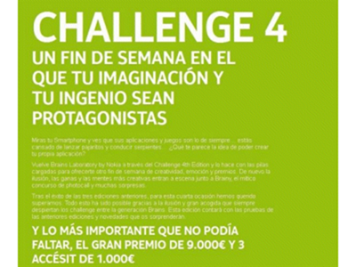 Los estudiantes universitarios ya pueden inscribirse para formar parte de Brains Laboratory Challenge 4th edition. La inscripción está abierta para estudiantes en grupo o de forma individual. Nokia ha confirmado que el grupo o usuario cuya idea sea seleccionada conseguirá un premio de 9.000 euros. Además, la compañía dará tres accésit de 1.000 euros cada uno.