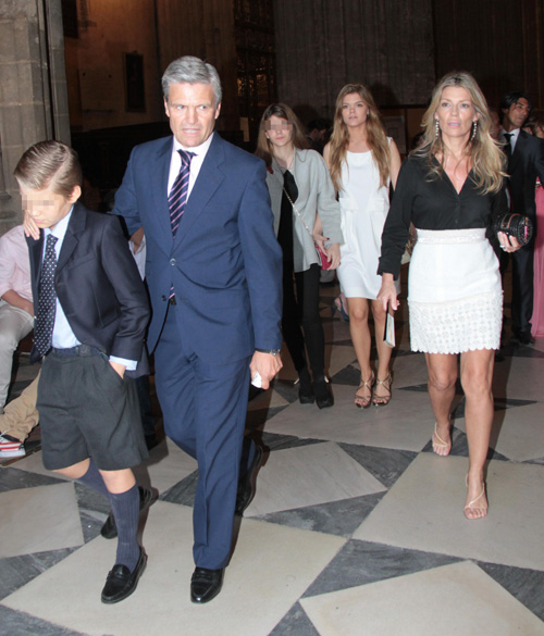 Patricia, muy guapa y elegante con una blusa negra y falda blanca que combinó con unas sandalias y ‘clutch’ a juego, llegó acompañada de su hijos, Alejandra, que también optó por el blanco, Isabel, que combinó el gris y el negro, y Juan, mientras que Espartaco había entrado en el templo minutos antes que su ex mujer. Tras la ceremonia religiosa, oficiada por el arzobispo de la capital andaluza, todos salieron juntos demostrando que después de una separación dura y complicada, todo ha vuelto a la normalidad.
