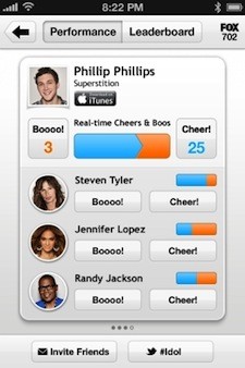 No es sorprendente que la función de sondeo se pondrá a prueba en el episodio de esta semana de American Idol. La forma en que el sondeo funcione es que usted tendrá la oportunidad de “animar” o “boo” actuaciones por medio de iconos en tu iPhone. ¿No te gusta lo que Steven Tyler o de J-Lo tiene que decir acerca de un artista? No hay problema – usted será capaz de abuchear tan bien (o alegría para ellos si usted está tan inclinado).