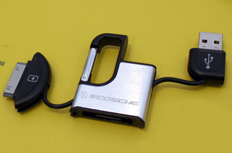 Hablando de cables iPhone, otra cosa agradable ver es que Scosche ha ampliado su línea de cables flipSYNC, un cable compacto del tamaño de un control remoto de alarma de coche que se despliega en un cable de carga USB. Ahora tienen la clipSYNC que incluye un clip mosquetón de estilo para adjuntarlo a su bolsa, y un sabor que tiene una batería en el mismo y sigue siendo muy compacto.
