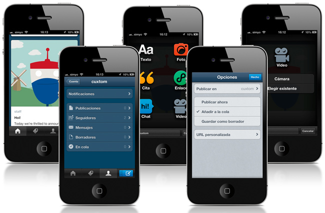 Gracias a ese nuevo soporte offline podremos escribir un post y dejarlo en la Cola a la espera de volver a disponer de conexión para que se publique. Por otro lado, la reciente unión entre Spotify y Tumblr también ha permitido añadir soporte para el famoso servicio de música en streaming. En definitiva, si sois usuarios de esta red social y tenéis un dispositivo iOS os recomiendo descargar la nueva versión. Lastima que aún no hayan lanzado una versión adaptada al iPad.
