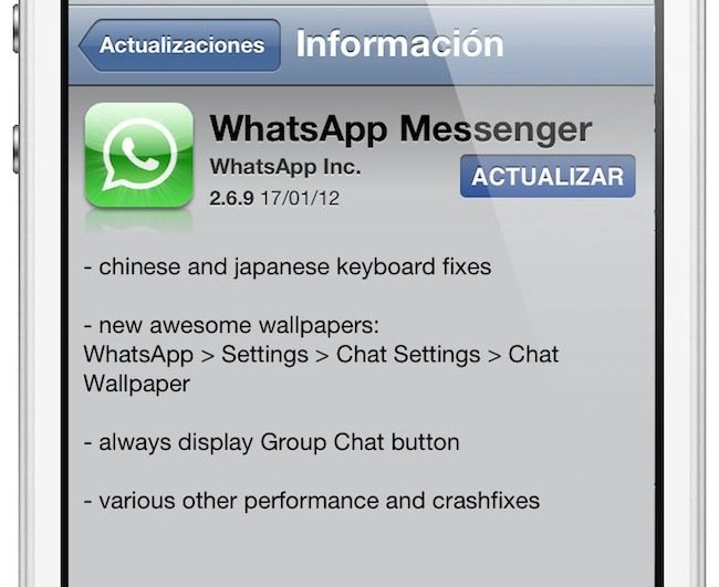 Desde hace unos minutos, ya se puede volver a descargar (y actualizar) la nueva versión de WhatsApp, que desapareció de la App Store hace unos días sin mediar explicaciones. Según el historial de cambios de esta nueva versión (la 2.6.9), éstas son las diferencias con la anterior: